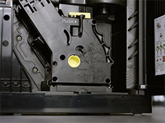 • Ievietojiet uzliešanas mezglu atpakaļ un pārliecinieties, ka tas bloķējas vietā. Ja uzliešanas mezgls ir pareizi ievietots un nobloķēts, ir dzirdams kluss klikšķis.
