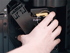 5. Izņemiet maltās kafijas tvertni un pilienu paplāti, atveriet apkopes durtiņas un vēlreiz mēģiniet ievietot uzliešanas mezglu.