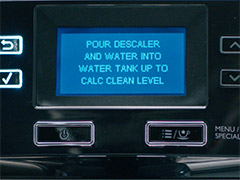 Ja atkaļķošanas indikators joprojām deg, ļoti iespējams, ka pēc atkaļķošanas cikla pabeigšanas kafijas automāts nav izskalots ar pietiekamu daudzumu ūdens.