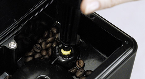 Maluma iestatījumus var regulēt ar pogu, kas atrodas kafijas pupiņu tvertnes iekšpusē. No smalka maluma piesātināta espresso pagatavošanai līdz rupjam malumam, ja vēlaties vieglāku kafijas dzērienu. Maluma iestatījumus regulējiet tikai, kad kafijas automāts maļ kafijas pupiņas. Lai regulētu dzirnaviņas, novietojiet tasīti zem izliešanas teknes. Nospiediet pogu "Espresso" un, kad dzirnaviņas sāk malšanu, ar regulēšanas atslēgu mainiet iestatījumu.