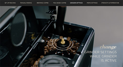 Maluma iestatījumus var regulēt ar pogu, kas atrodas kafijas pupiņu tvertnes iekšpusē. No smalka maluma piesātināta espresso pagatavošanai līdz rupjam malumam, ja vēlaties vieglāku kafijas dzērienu. Maluma iestatījumus regulējiet tikai, kad kafijas automāts maļ kafijas pupiņas. Lai regulētu dzirnaviņas, novietojiet tasīti zem izliešanas teknes. Nospiediet pogu "Espresso" un, kad dzirnaviņas sāk malšanu, ar regulēšanas atslēgu mainiet iestatījumu.