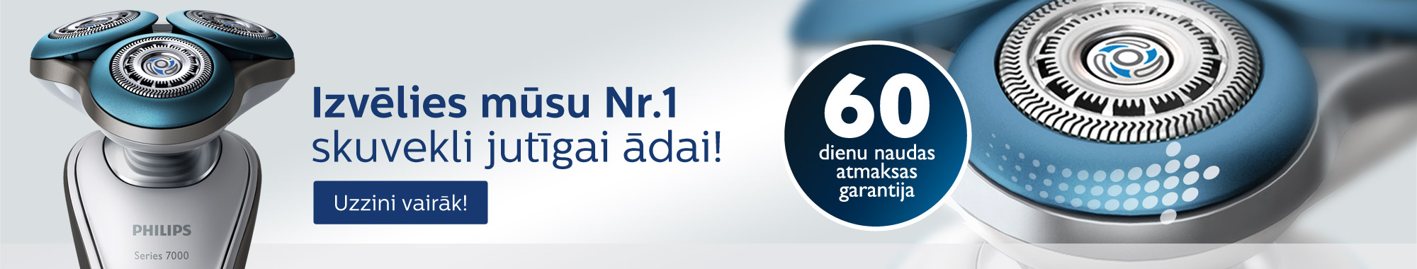 Jaunais Philips SHAVER 7000. sērijas skuveklis viegli pieskaras ādai, nodrošinot gludu skuvumu. GyroFlex 2D sistēma viegli pielāgojas sejas formai, un, izmantojot DualPrecision asmeņus, noskuj pat visīsākos rugājus.